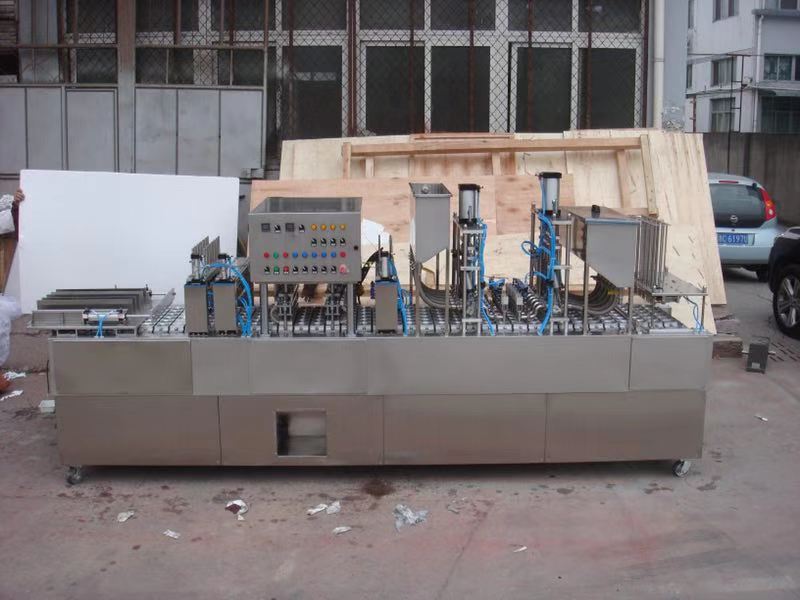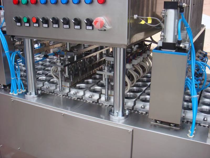 2、 采用氣電、機械一體設(shè)計,傳動平穩(wěn),從容器的供給、充填、封口、切邊、制品的輸出、廢料收卷等完全自動化,以節(jié)約人力,降低成本。
